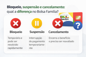 Muita gente confunde esses três termos, mas eles têm significados diferentes dentro do Bolsa Família. Entender essa diferença é importante para saber como agir em cada situação.